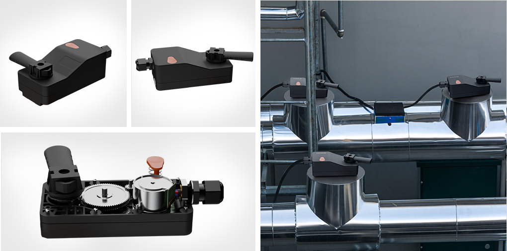 产品说明:风阀执行器采用一体化设计,满足IP54防护等级要求,工作范围为90°,具备一定自锁力。额定电压范围可在AC19.2-28.8 V/DC19.2- 28.8 V;位置精确度±5 %。其中齿轮箱采用塑料外壳+粉末冶金齿轮,配合进步电机,具有体积小、耐高温、负载能力大、噪音小、成本低、寿命长等特点。